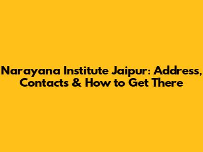 Narayana Institute Jaipur: Address, Contacts & How To Get There