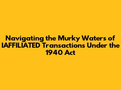 Navigating The Murky Waters Of IAFFILIATED Transactions Under The 1940 Act
