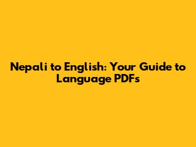 Hey guys! Ever found yourself needing to translate something from Nepali to English? Maybe you're diving into Nepali literature, chatting with friends, or exploring the rich culture of Nepal. Whatever the reason, having a reliable way to translate languages is super useful. In this article, we'll dive into the world of Nepali to English language PDFs, exploring why they're handy and how you can make the most of them. We'll also touch on some common challenges and cool tools to help you along the way. So, let's get started!
