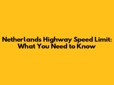 Netherlands Highway Speed Limit: What You Need To Know