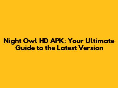 Night Owl HD APK: Your Guide To The Latest Version