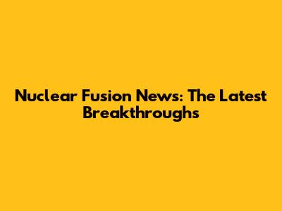 Nuclear Fusion News: The Latest Breakthroughs