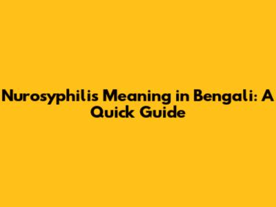 Nurosyphilis Meaning In Bengali: A Quick Guide