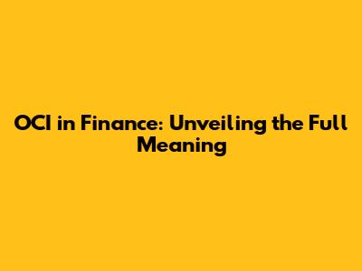 OCI In Finance: Unveiling The Full Meaning
