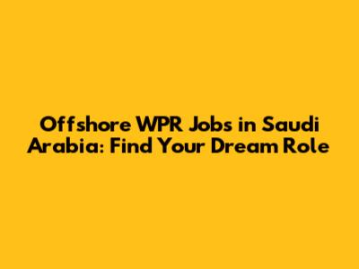 Offshore WPR Jobs In Saudi Arabia: Find Your Dream Role