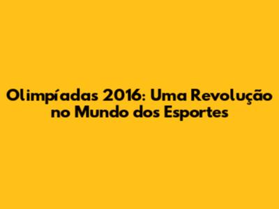 Olimpíadas 2016: Inovação E Impacto Nos Esportes