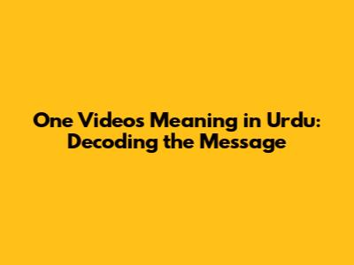 One Video's Meaning In Urdu: Unveiling Nuances