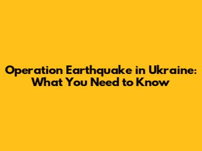 Operation Earthquake In Ukraine: What You Need To Know