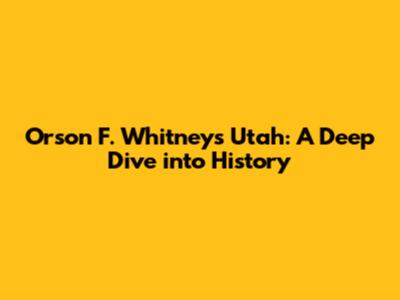 Orson F. Whitney's Utah: A Deep Dive Into History