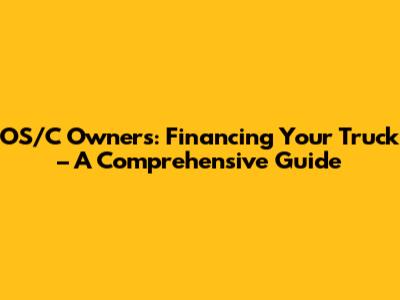 OS/C Owners: Financing Your Truck – A Comprehensive Guide