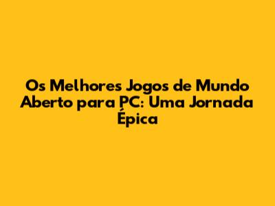 Os Melhores Jogos De Mundo Aberto Para PC: Uma Jornada Épica