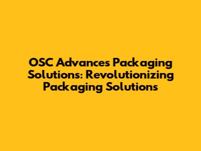 OSC Advances: Revolutionizing Packaging Solutions