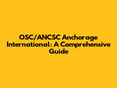 OSC/ANCSC Anchorage International: A Comprehensive Guide