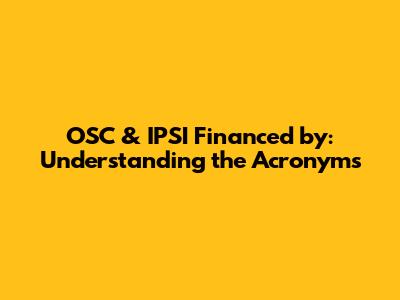 OSC & IPSI Financed By: Understanding The Acronyms