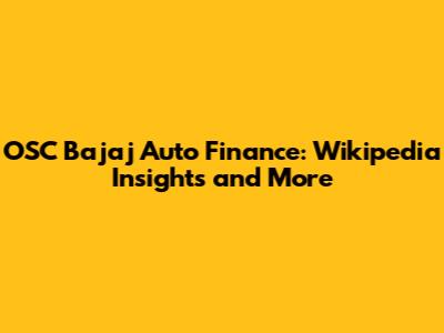 OSC Bajaj Auto Finance: Wikipedia Insights And More