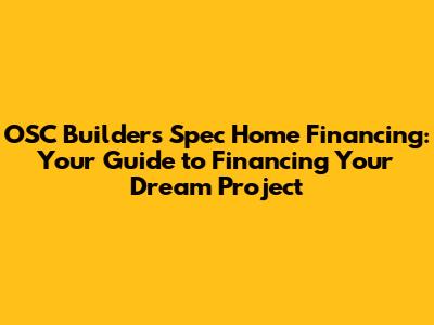 Securing OSC Builders spec home financing requires careful planning, a solid understanding of the market, and a strong financial profile. By following these tips and working closely with OSC Builders, you can increase your chances of getting the funding you need to turn your spec home dreams into reality. Good luck, and happy building!