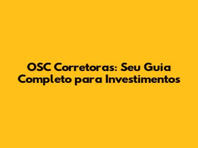 OSC Corretoras: Seu Guia Completo Para Investimentos