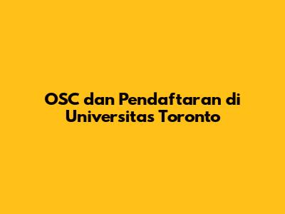 OSC Dan Pendaftaran Di Universitas Toronto
