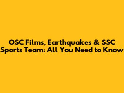 OSC Films, Earthquakes & SSC Sports Team: All You Need To Know