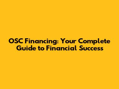 OSC Financing: Your Complete Guide To Financial Success