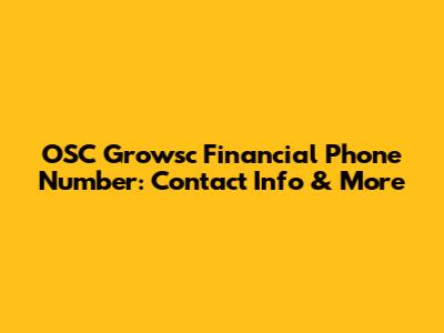 OSC Growsc Financial Phone Number: Contact Info & More