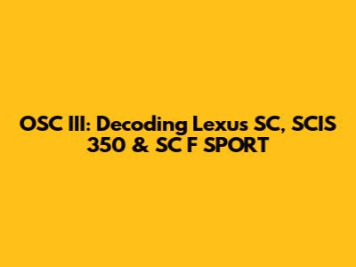 OSC III in Lexus SC, SCIS 350, and SC F SPORT: Model-Specific Insights
