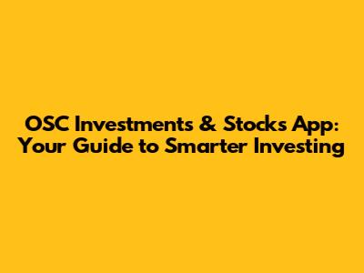 OSC Investments & Stocks App: Your Guide To Smarter Investing