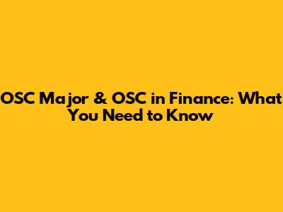 OSC Major & OSC In Finance: What You Need To Know