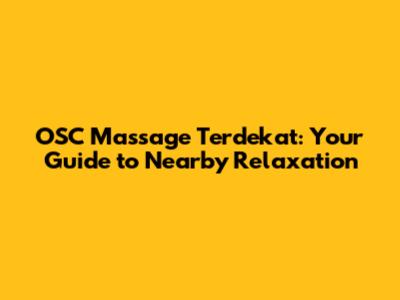 Hey guys! Ever feel like your body is screaming for a break? Like, a real, serious, "I need some serious TLC" kind of break? Well, if you're in the market for some serious chill vibes and a chance to melt away all that tension, then you're in the right place. Today, we're diving deep into the wonderful world of OSC Massage terdekat, which, for those of you not in the know, means finding a fantastic massage place near your current location. We'll explore how to find the perfect spot, what to expect, and why OSC Massage might just be your new favorite way to unwind. Get ready to say goodbye to those knots and hello to pure bliss!