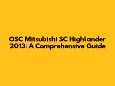 OSC Mitsubishi SC Highlander 2013: A Comprehensive Guide