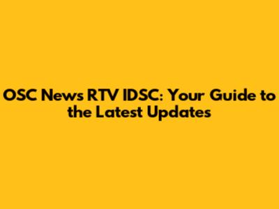 OSC News RTV IDSC: Your Guide To The Latest Updates