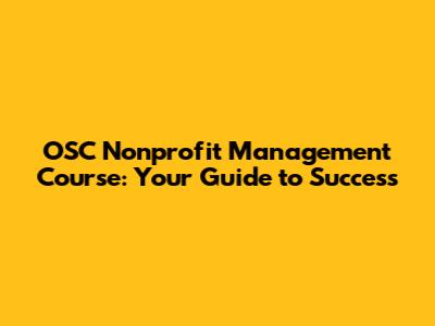 OSC Nonprofit Management Course: Your Guide To Success
