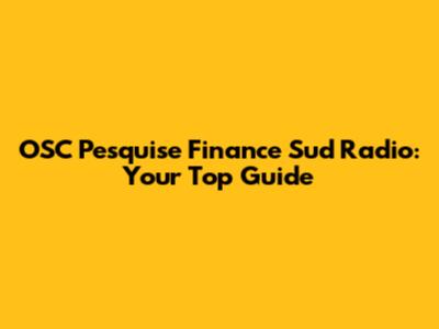 OSC Pesquise Finance Sud Radio: Your Top Guide