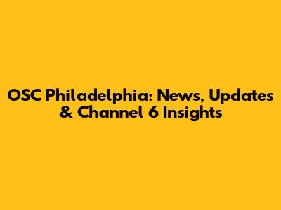 OSC Philadelphia: News, Updates & Channel 6 Insights