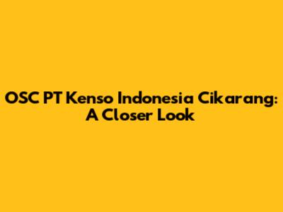 OSC PT Kenso Indonesia Cikarang: A Closer Look