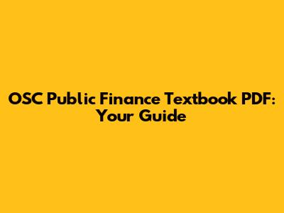 OSC Public Finance Textbook PDF: Your Guide