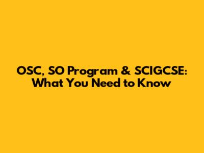 OSC, SO Program & SCIGCSE: What You Need To Know
