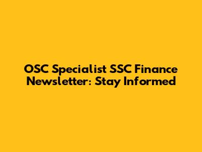 OSC Specialist SSC Finance Newsletter: Learn More