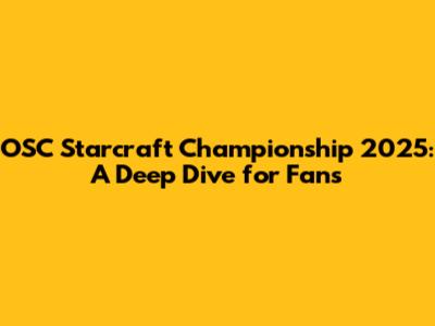 OSC Starcraft Championship 2025: What You Need To Know