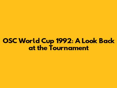 OSC World Cup 1992: A Look Back At The Tournament