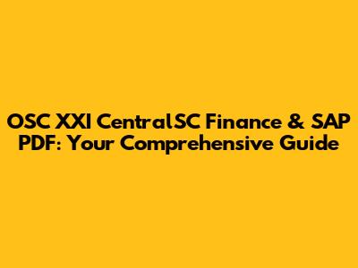 OSC XXI CentralSC Finance & SAP PDF: Your Comprehensive Guide