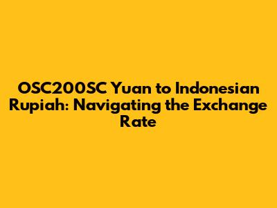Hey guys! Ever wondered how much your OSC200SC Yuan from China is worth in Indonesian Rupiah? Well, you're in the right spot! This article dives deep into understanding the OSC200SC Yuan to Indonesian Rupiah (IDR) exchange rate. We'll explore the current rates, factors that influence them, and provide insights to help you navigate currency conversions effectively. Let's get started, shall we?