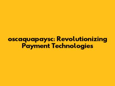 Oscaquapaysc: Revolutionizing Payment Technologies