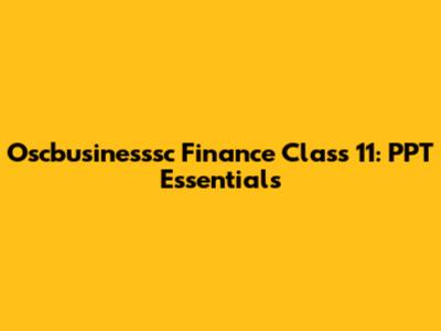 Oscbusinesssc Finance Class 11: PPT Essentials