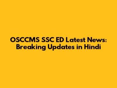 OSCCMS SSC ED Latest News: Breaking Updates In Hindi