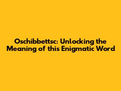 Oschibbettsc: Unlocking The Meaning Of This Enigmatic Word