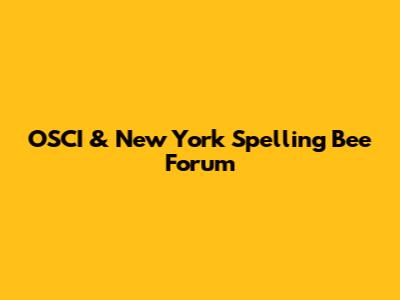 OSCI & New York Spelling Bee Forum