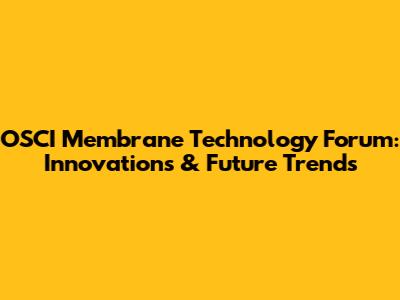 OSCI Membrane Tech Forum: Innovations & Future Trends