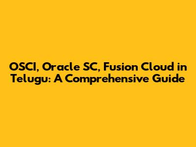 OSCI, Oracle SC, Fusion Cloud In Telugu: A Comprehensive Guide