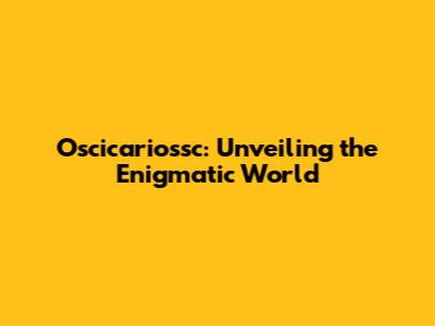 Oscicariossc: Unveiling The Enigmatic World